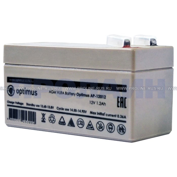 АКБ AP-12012 Optimus создан для использования в охранных или пожарных системах. Надежный источник резервного питания, который может работать в буферном или цикличном режиме. Корпус из ABS-пластика, который не поддерживает процесс горения. Этот аккумулятор не требует обслуживания.