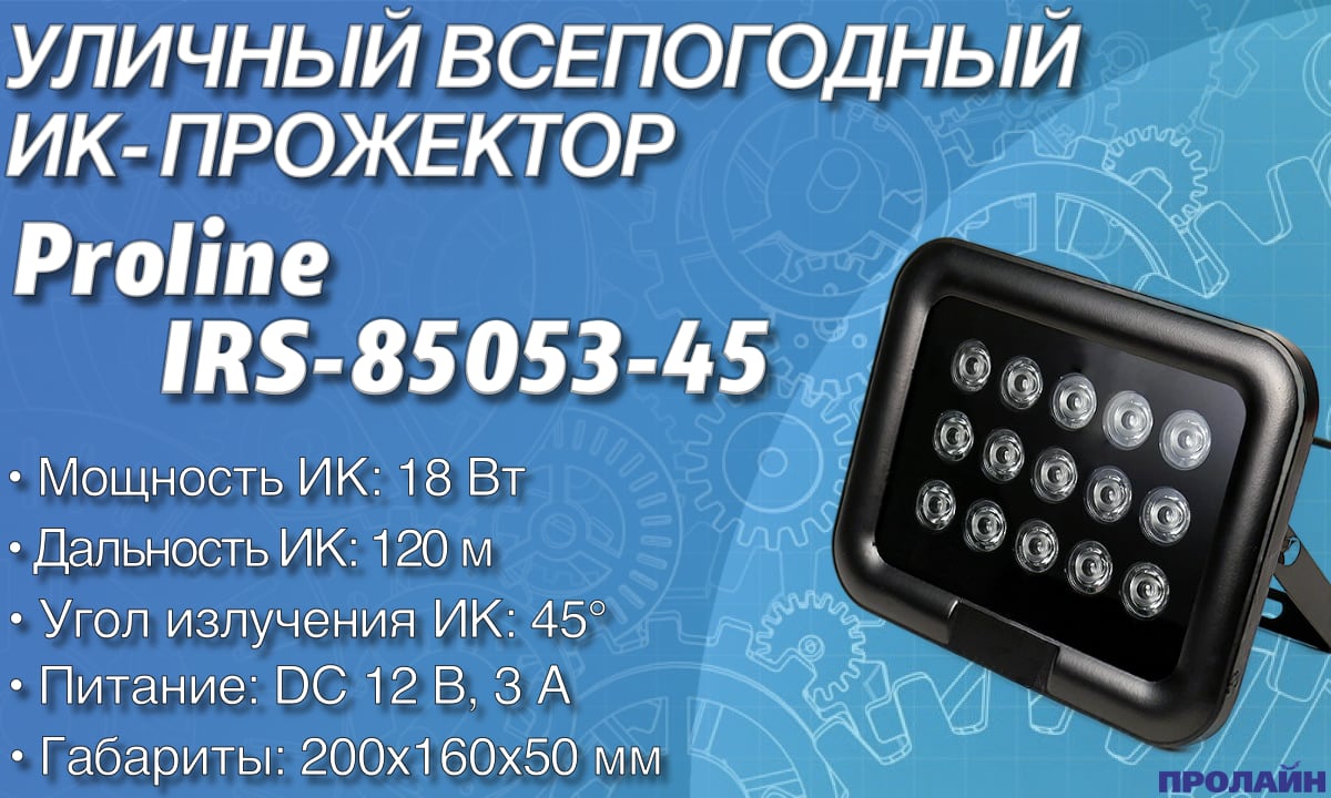 Уличный ИК-прожектор Proline IRS-85053-45 представляет собой эффективное решение для видеонаблюдения в условиях низкого освещения. Уличный ИК-прожектор предназначен для расширения возможностей систем видеонаблюдения. Благодаря мощным диодам в условиях недостаточной яркости устройство обеспечит эффективную подсветку объектов на расстоянии до 120 метров при угле освещения в 45°. С его помощью можно обеспечить качественную подсветку территории на расстоянии до 120 метров в инфракрасном диапазоне, что позволяет камерам фиксировать изображения даже в полной темноте. Дальность действия до 120 метров в ИК-диапазоне 850 нм.