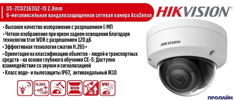 Уличная IP-камера HIKVISION DS-2CD2163G2-IS 2.8mm оснащена всеми необходимыми атрибутами для ведения эффективного наружного видеонаблюдения. Класс защиты устройства IP67 (защита от попадания пыли, временное погружение в воду на глубину до метра). Одним из преимуществ видеокамеры является широкий диапазон рабочих температур от -30 до +60 градусов Цельсия. ИК-подсветка позволяет вести съемку ночью в условиях низкого освещения. Благодаря широкоугольному объективу и высокому разрешению камера может использоваться в составе систем видеонаблюдения парковок, офисных зданий, различных социальных объектов или частного жилья.