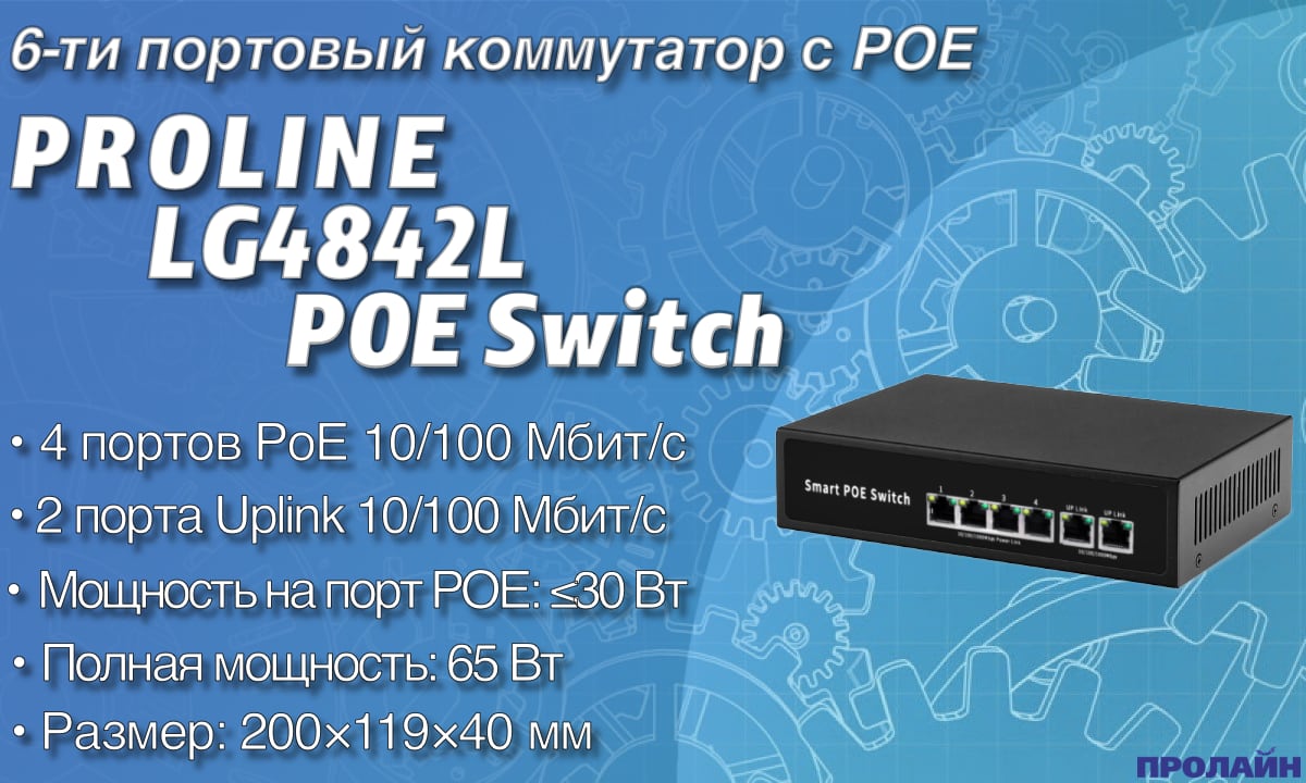 6-ти портовый коммутатор с POE Proline LG4842QG POE Switch |