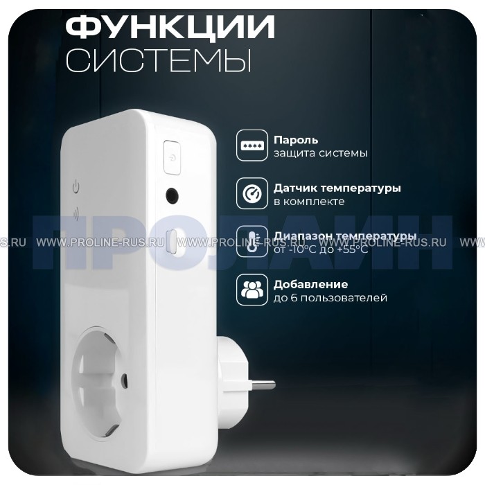Розетка радиоканальная для управления питанием 16А с нагрузкой 3.5 кВт, датчик температуры