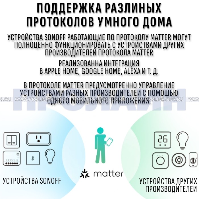 - Поддержка Matter. WiFi реле Sonoff MINI R4M Extreme Matter работает на новом универсальном стандарте Matter, что позволяет легко интегрировать его в любые экосистемы умного дома, включая Apple HomeKit, Google Home, Amazon Alexa и другие. Это делает управление устройствами ещё проще и удобнее.