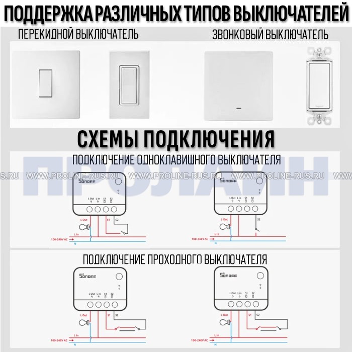 | Подключение выключателей | в S1,S2 до 2-х по проходной схеме |