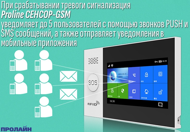 - Оповещение до 5 пользователей звонками и SMS-сообщениями при тревоге через мобильную связь GSM.