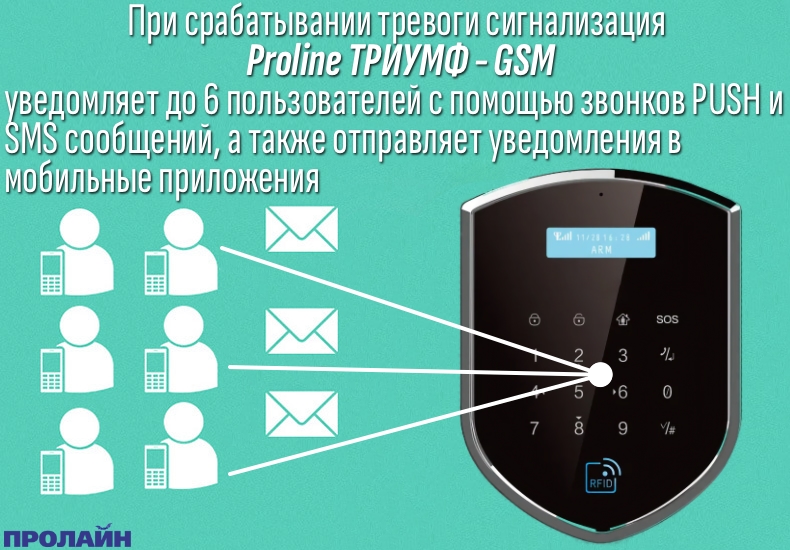 Защитите свой дом или бизнес с помощью нашей беспроводной GSM и Wi-Fi TUYA сигнализаци Proline ТРИУМФ-GSM — современного решения для обеспечения безопасности. Эта уникальная охранная система оснащена двумя каналами оповещения: через сотовую сеть и мобильное приложение, что гарантирует неизменную защиту в любой ситуации. Наша цифровая сенсорная панель с жидкокристаллическим дисплеем и удобным контактом для RFID-карт позволяет легко управлять и программировать сигнализацию, а также ставить и снимать её с охраны одним движением.