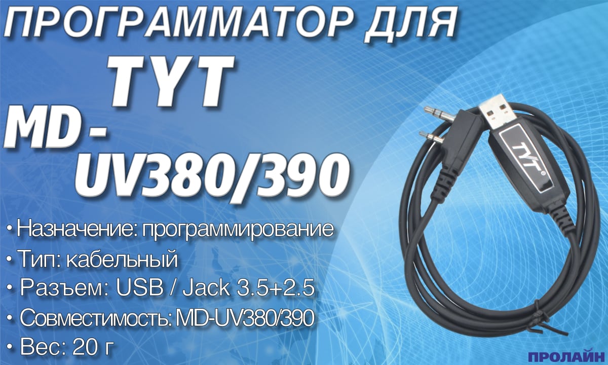 Программатор TYT позволяет с помощью компьютера изменять каналы и настройки в цифровых радиостанциях TYT MD-UV380/390.