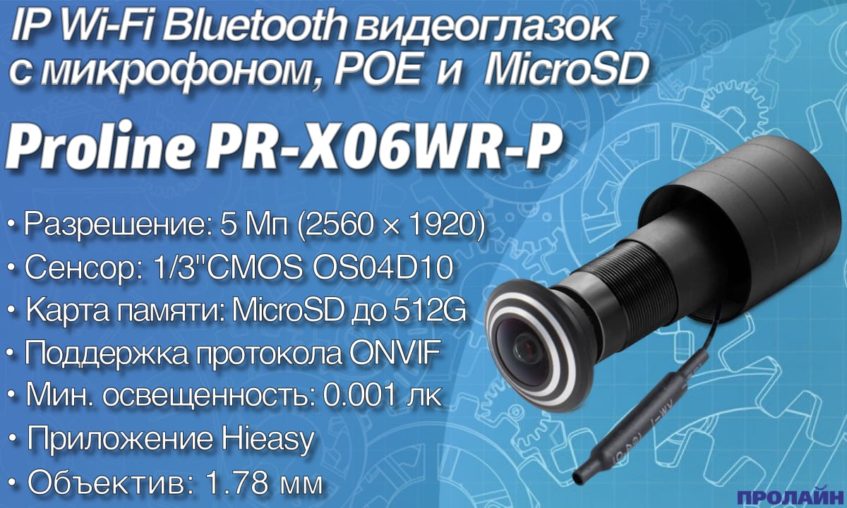 IP Wi-Fi Bluetooth видеоглазок с микрофоном и POE Proline PR-X06WR-P |