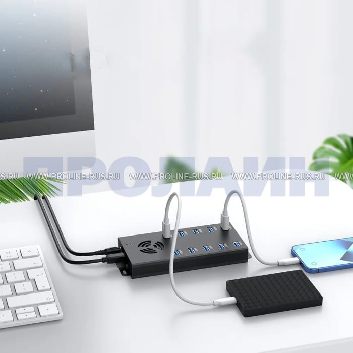 10 портовый USB-хаб Proline PR-CS423A – это универсальное зарядное устройство с возможностью передачи данных. Прибор оснащен портами USB 3.0. Хаб позволяет одновременно скачивать данные с персональных регистраторов, камер и фотоаппаратов. Компактные размеры и форма корпуса позволяют установить его в любом удобном для пользователя месте, в устойчивом положении. Также устройство поддерживает планшеты и смартфоны на базе операционной системы Android и iOS.