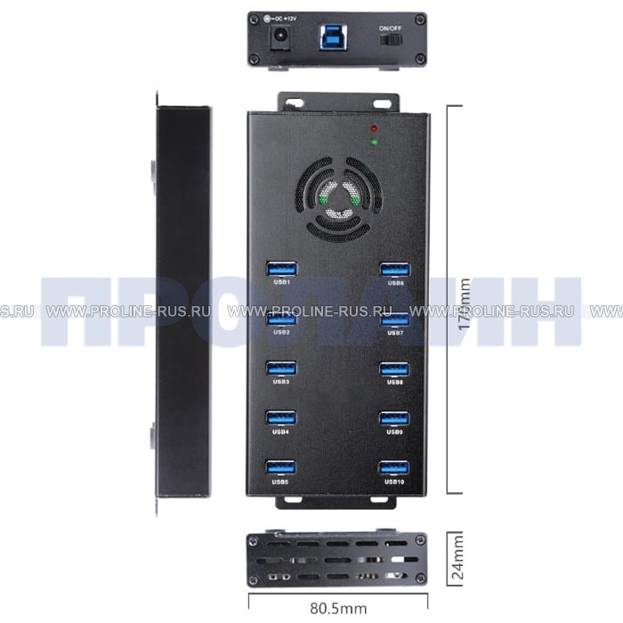 Если вы испытываете недостаток в USB-портах, то USB HUB Proline PR-CS423A поможет решить этот вопрос. Синхронизация и подзарядка до 10 гаджетов без необходимости подключения к компьютеру. Выходное напряжение до 5 вольт, 2.1 ампер на каждый порт. Устройство выполнено в металлическом корпусе и оснащено вентилятором для отвода тепла. Порты можно использовать как для передачи данных, так и для питания USB-совместимых устройств. Устройство соответствует требованиям спецификации USB 2.0, обеспечивая скорость передачи данных до 5 Гбит/с. Электропитание устройства осуществляется от блока на 12 вольт.